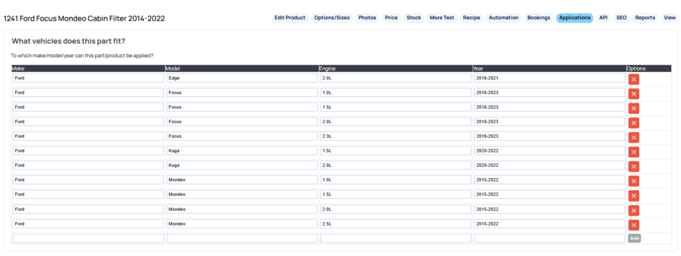 Do you need to create relationships between your products, and the make/model/type of products where they can be applied? eg Car automotive industry, some parts fit many different types of cars. Yes you can.