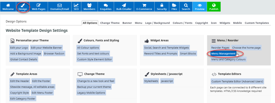 This will allow you to quickly revert to your original menu if you do not like the look of any of the menus applied.
