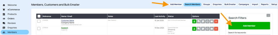 Click the main MEMBER menu button, then choose Add Member from the options available.