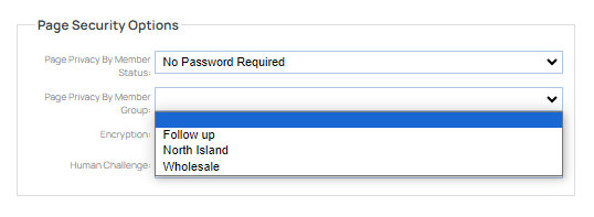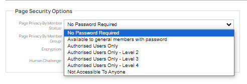 To restrict access, click the Page Privacy by Member Status drop down and select the type of protection you require.