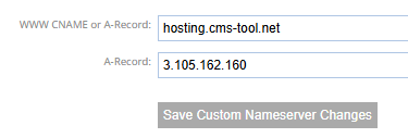 4. Enter your new www.CNAME and A record into the boxes provided.