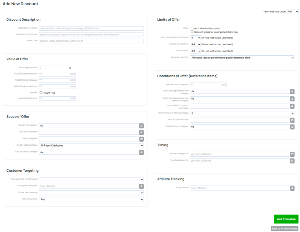 | Max Price Per Item: | Set a maximum price per item after discount (useful for limiting high-value discounts). |