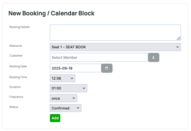 You can also set the customer to None to assign the booking to a SYSTEM user.