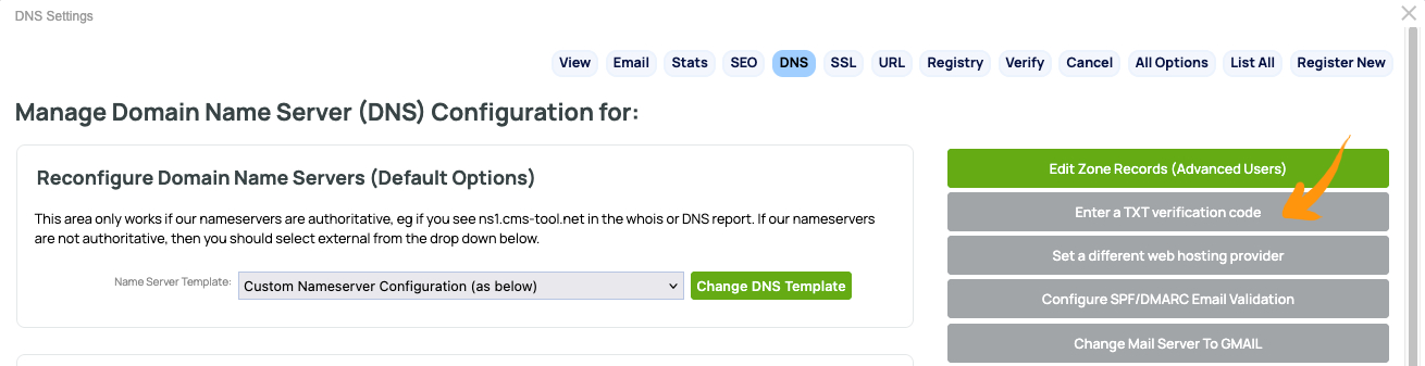 - Click the Enter a TXT verification code button found on the right-hand side. (screenshot below)