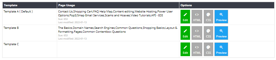 On this page you will find listed the current custom templates, and which page they are assigned to.