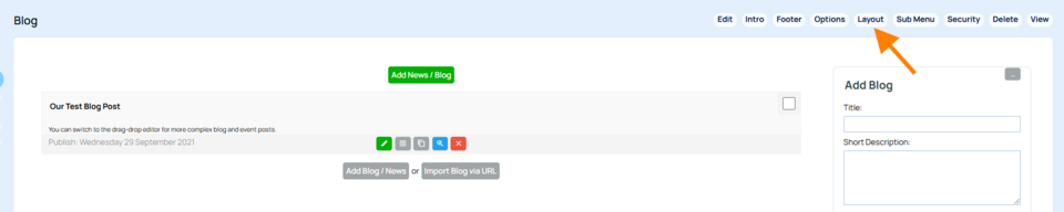 ABOVE - A blog page editor window with the LAYOUT tabs indicated.