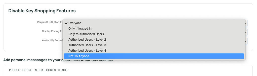 From the options available click the ENABLE/DISABLE BUY BUTTON button under the Site Wide Message heading