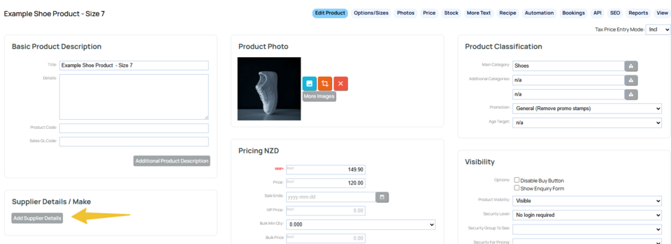 When creating or editing a product, there is an area for Supplier Info / Drop Shipping.