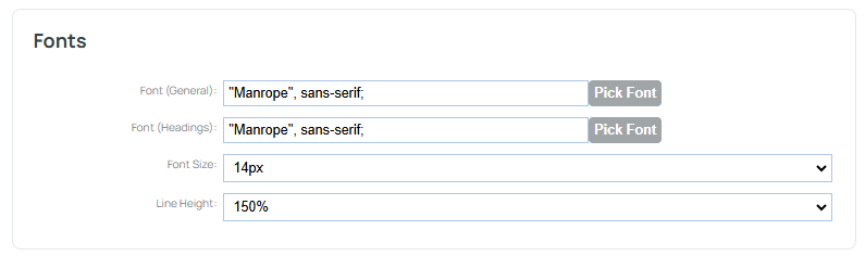 Sets the font family used by the website headings (H1,H2,H3,H4)