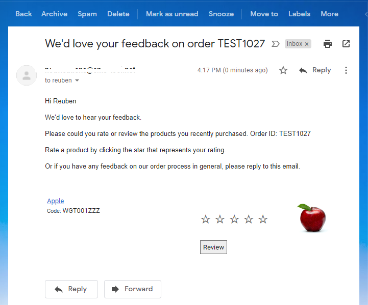 If you want to test the template for a rating/review request email: