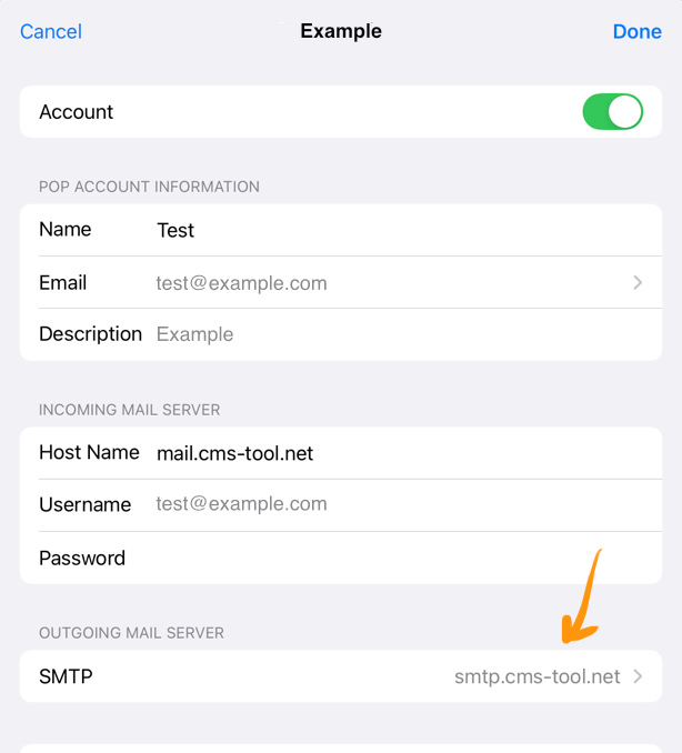 In the screenshot below, clicking the smtp.cms-tool.net link will take you to the settings.