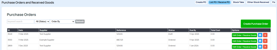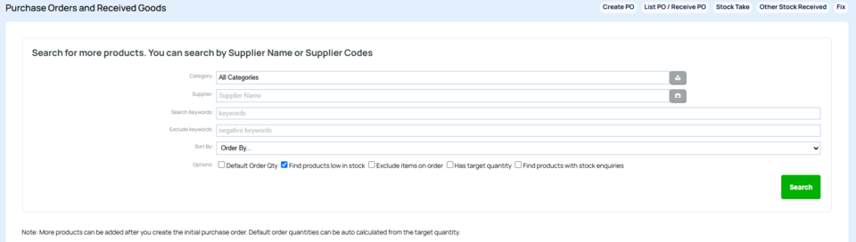 If you have your Suppliers and supplier cost etc added to your products, you can create purchase orders via the CMS that can be emailed to your supplier.