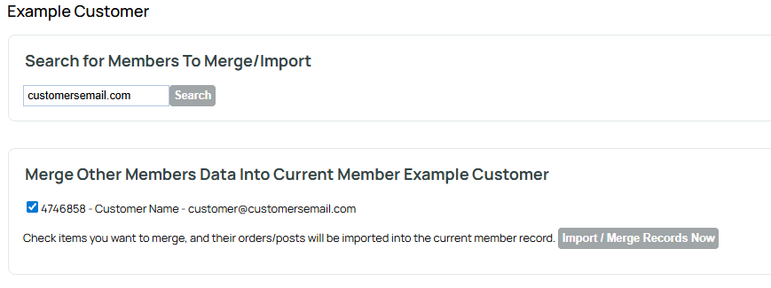6. Select the box next to the customer who's profile you want to merge and click Import/Merge Records Now