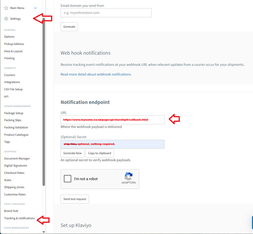 8. Choose if you would like StarShipIT to send notifications to the customer, or the website CMS.