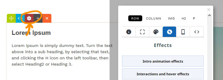 Within the STYLE EDITOR is an effects tab which allows you to add animation effects and custom styling.