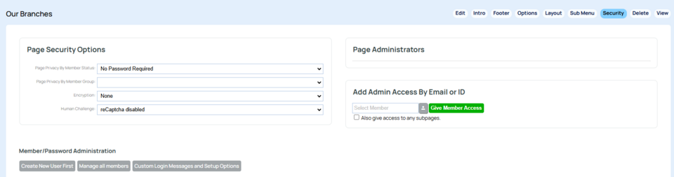 To restrict access, click the Page Privacy by Member Status drop down and select the type of protection you require.