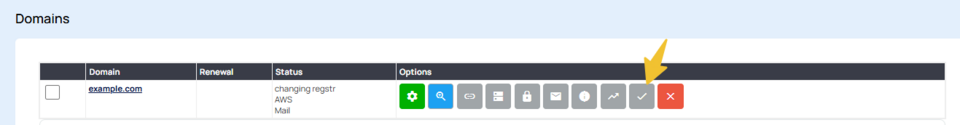 - Click the DOMAINS/EMAILS area and click the check icon next to the required domain (or click the domain name then find the verify domain option)