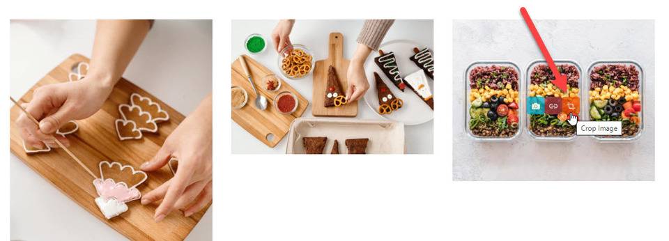 Hover over one of the images, click the crop icon to open the crop image wizard.