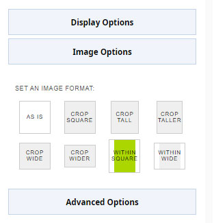 With the Image Options area you can set how your images are displayed to make them all consistent sizing if needed.