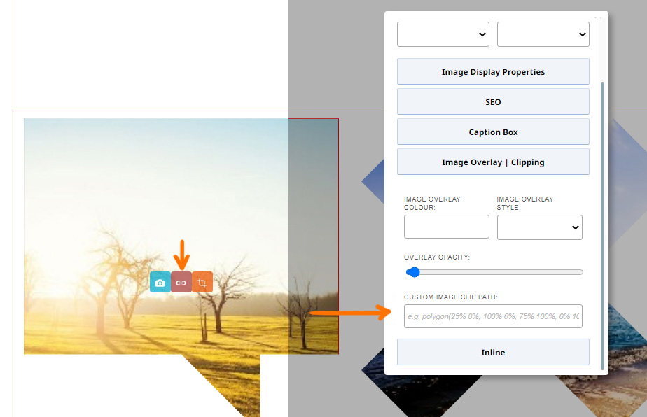 You can add a clip path via the Image Properties popup when hovering over an image.