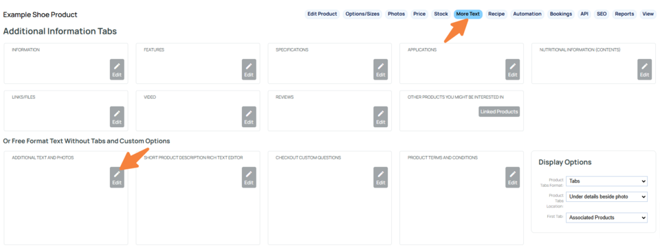 If you need to add custom text below the main product area, there is an area to add this outside of the tabbed format.